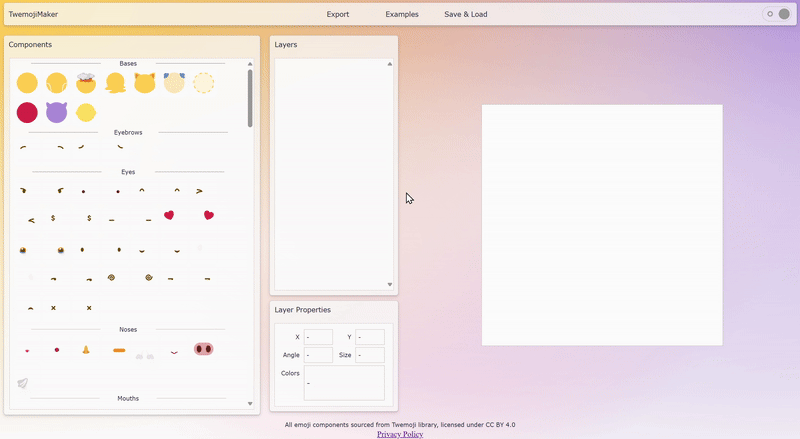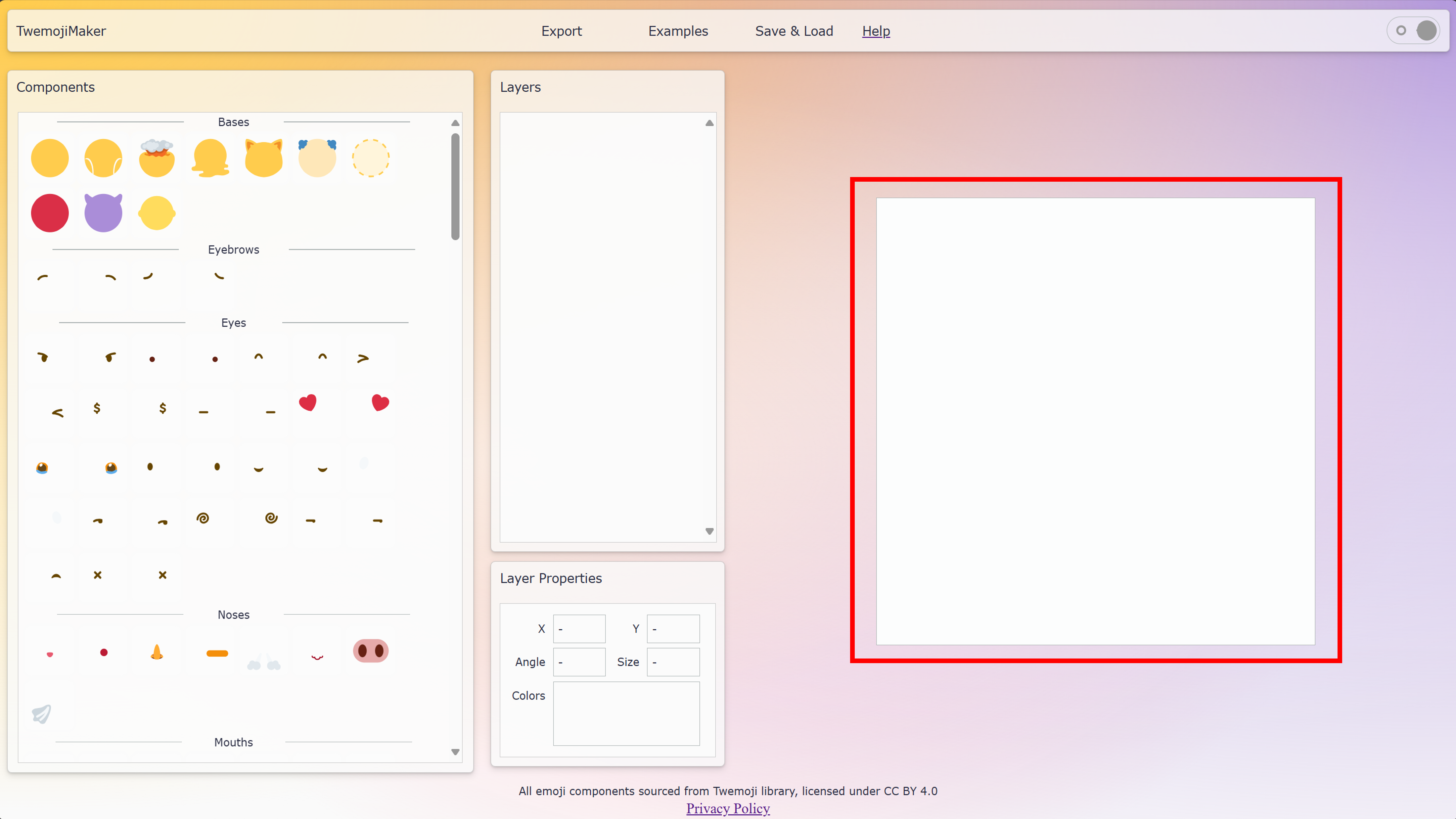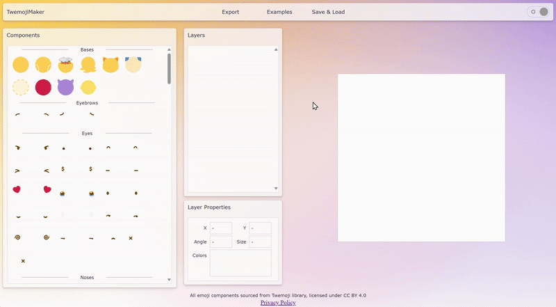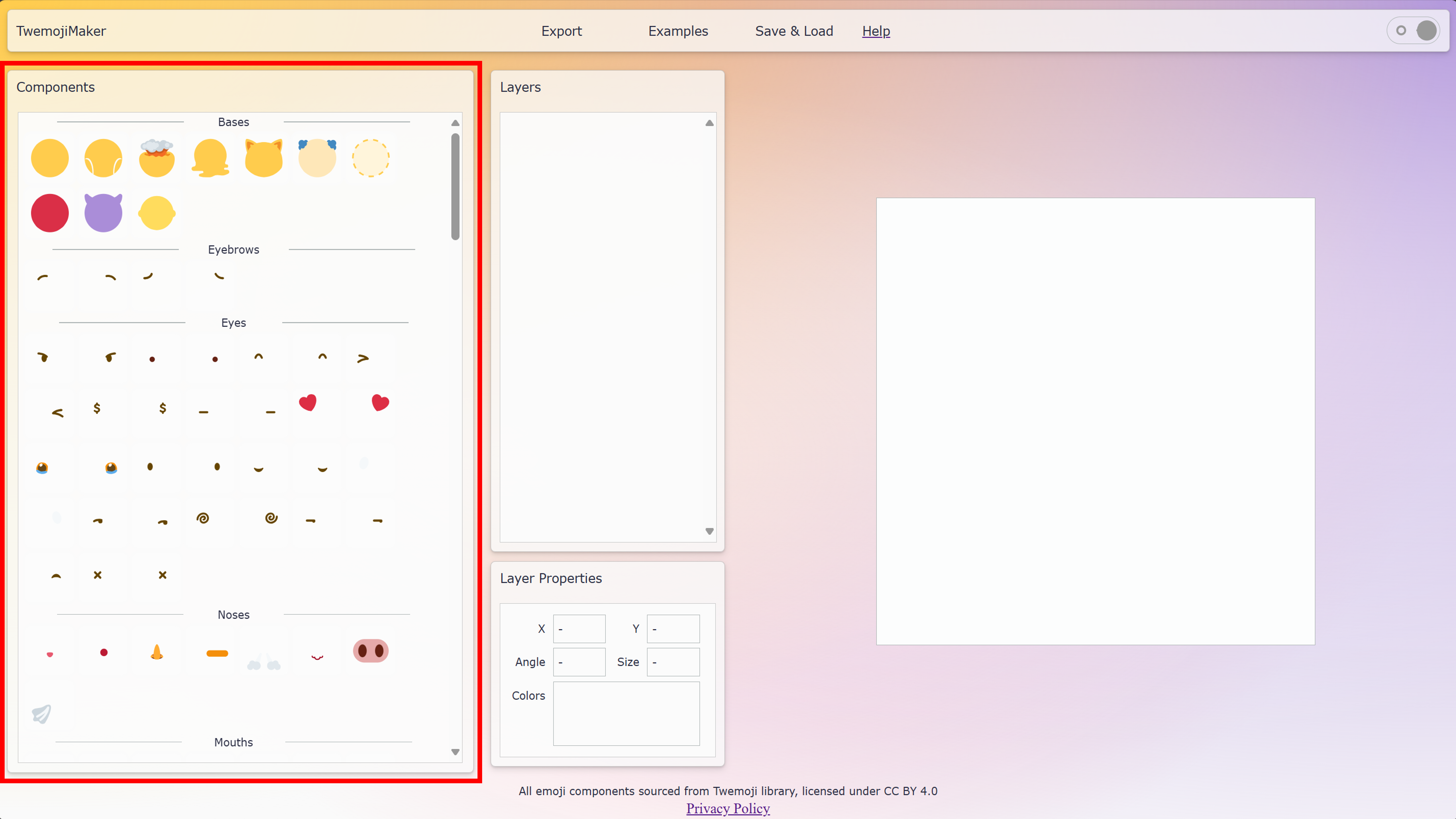 The Components Panel loads all of the emoji parts that you can add to your project.